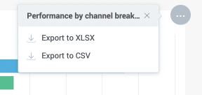 You can export any widget to CSV or excel format. To export a report on the standard dashboard, click on the button (…) and choose the file format.