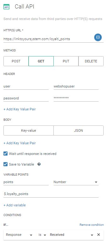 Example: Add firstName to include the end user's name. Add orderID as context when contacting the end user about their order.