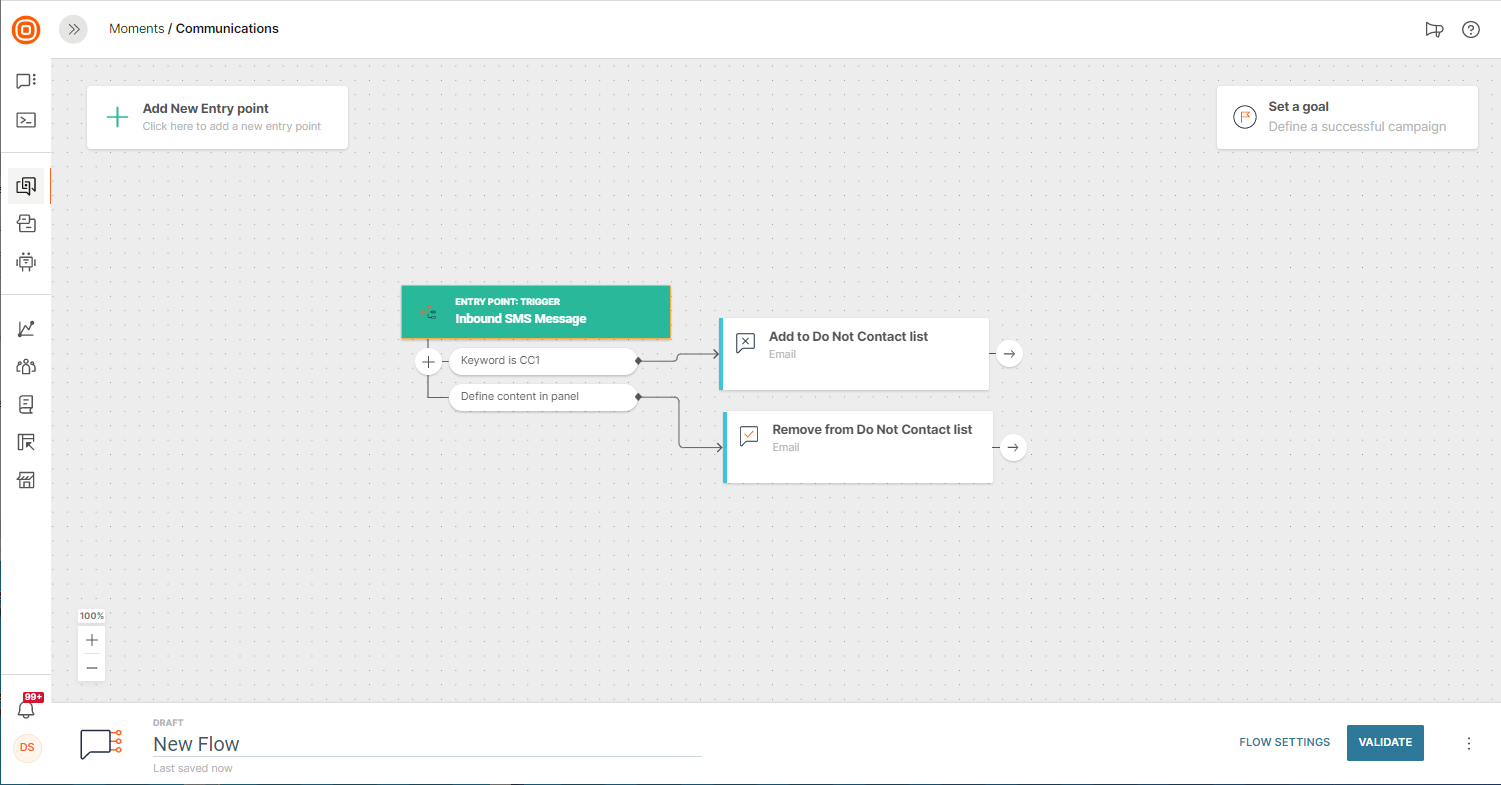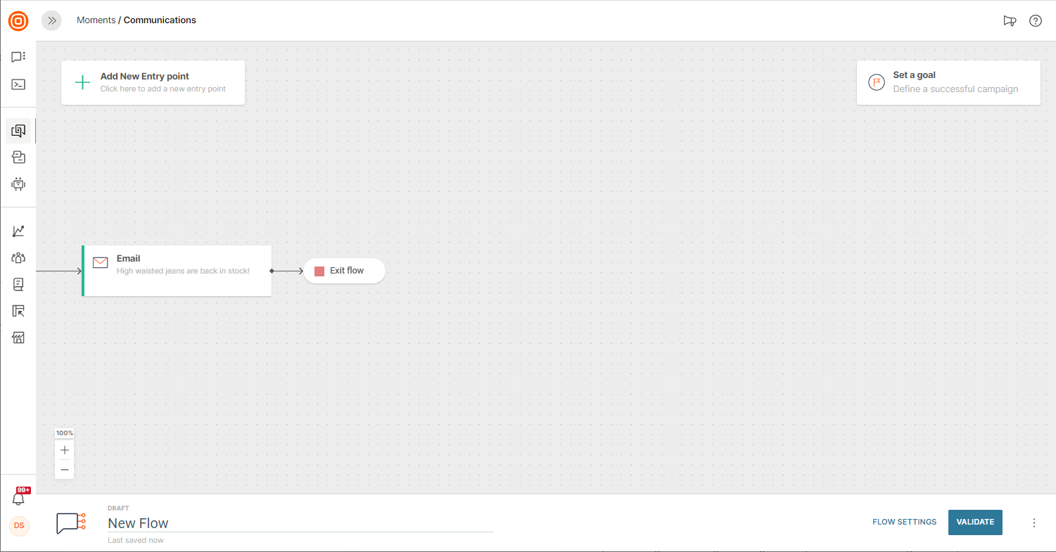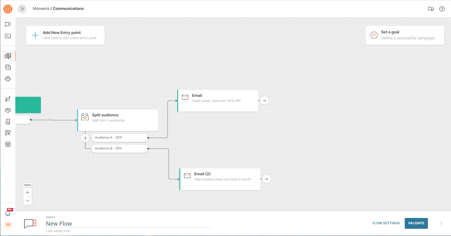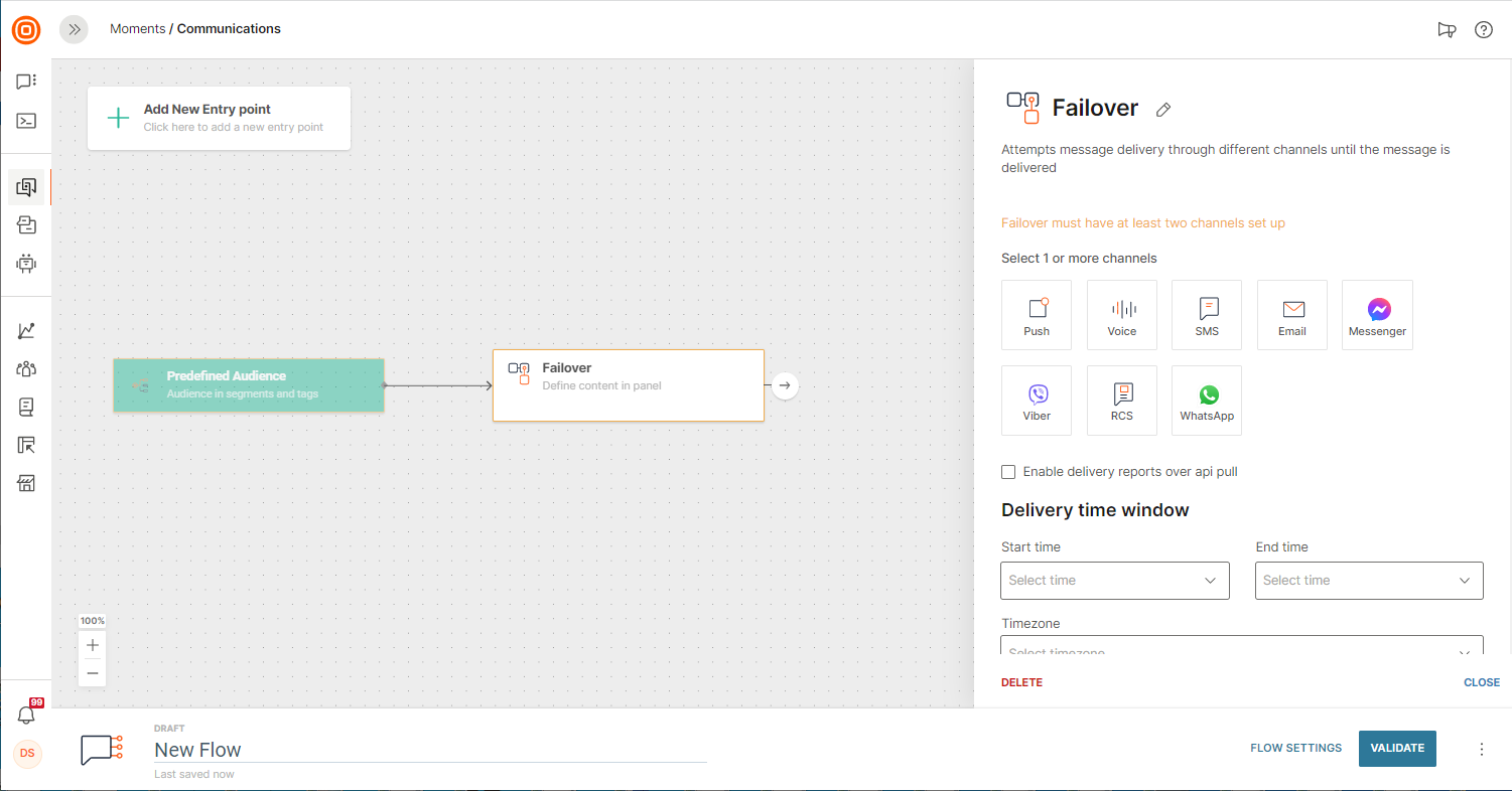 - Channels: The different channels such as SMS, Email, or WhatsApp through which you can engage your audience during a flow journey.