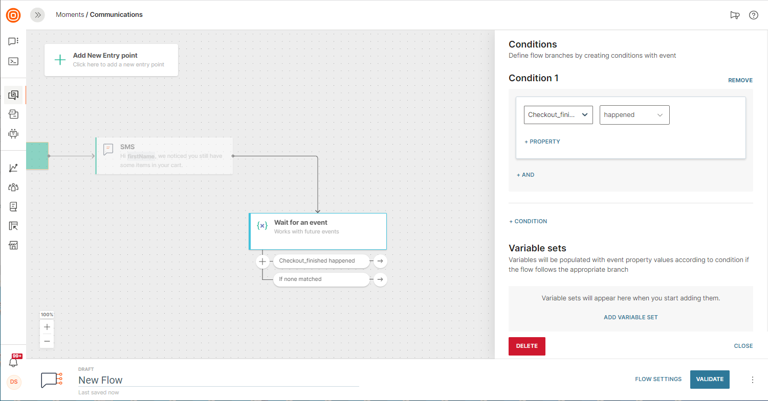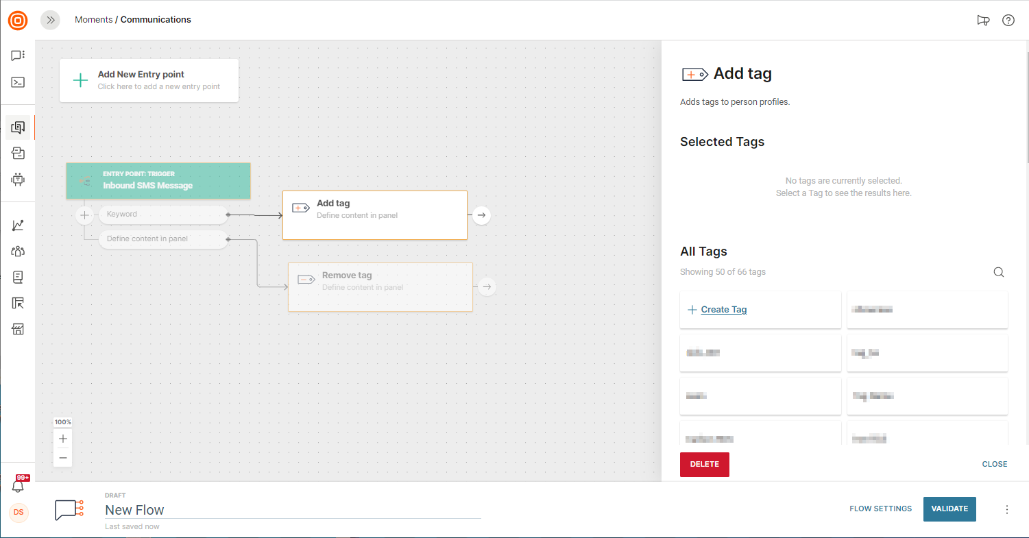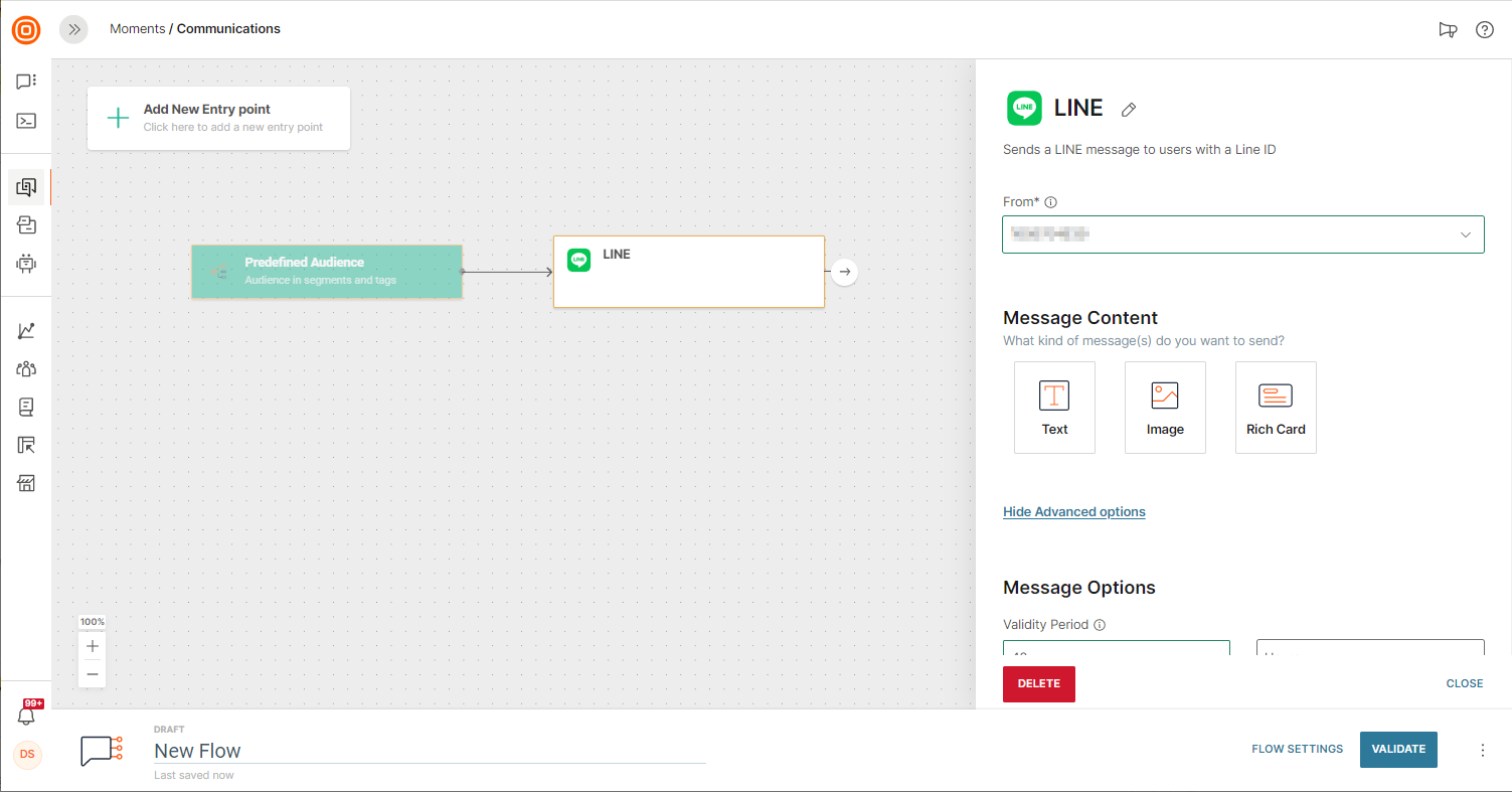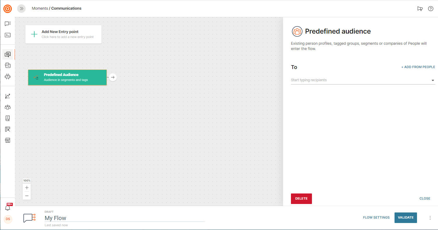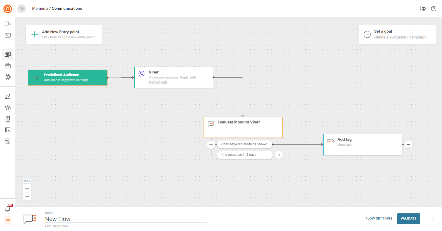 - Channels: The different channels such as SMS, Email, or WhatsApp through which you can engage your audience during a flow journey.