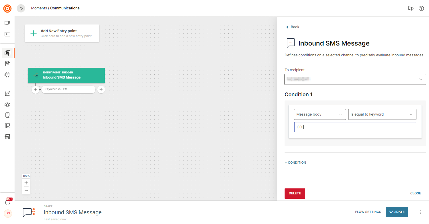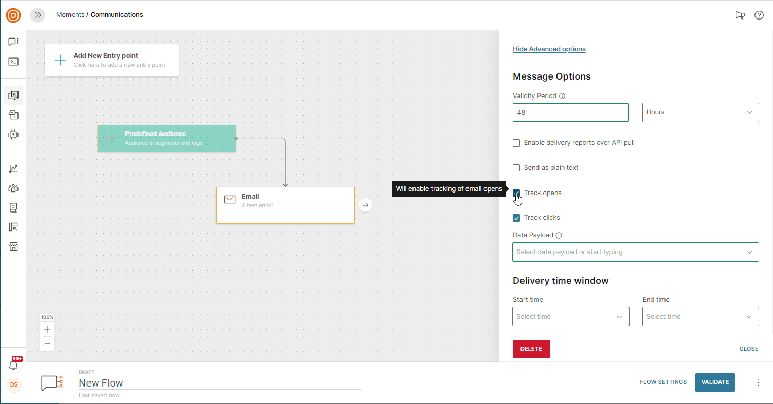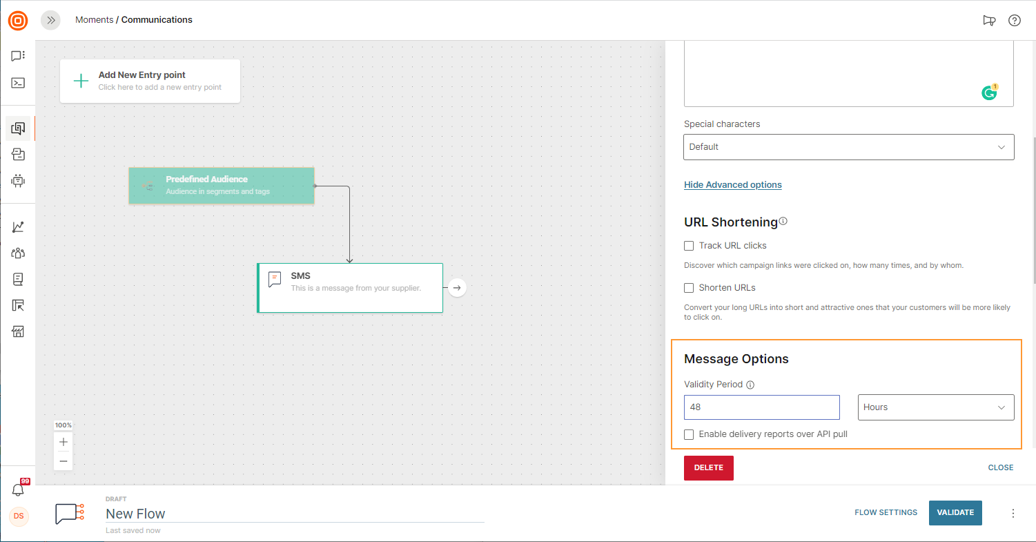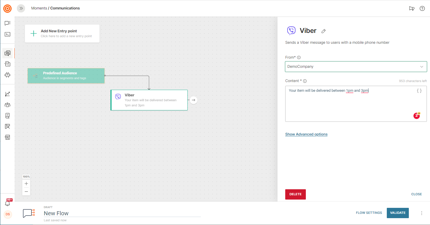 - Channels: The different channels such as SMS, Email, or WhatsApp through which you can engage your audience during a flow journey.
