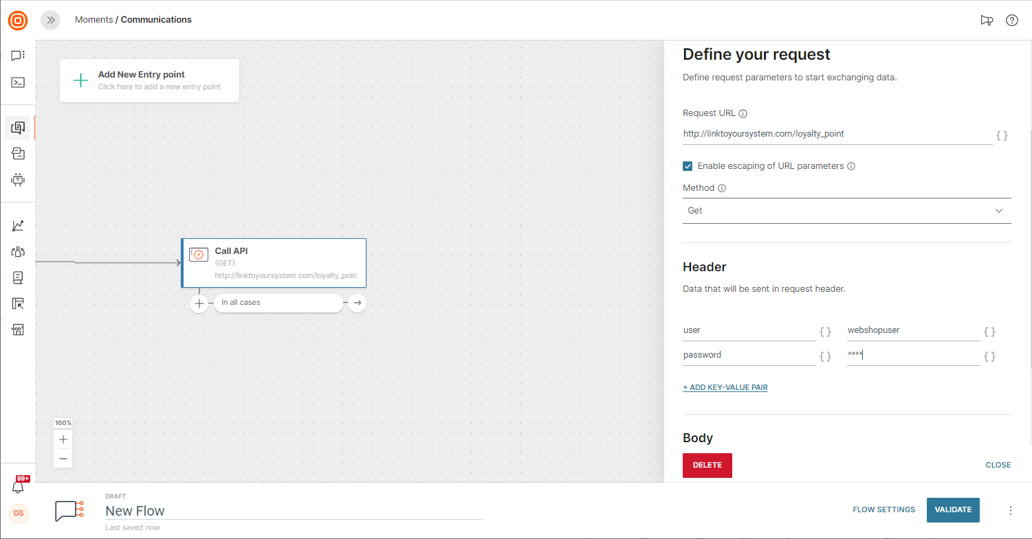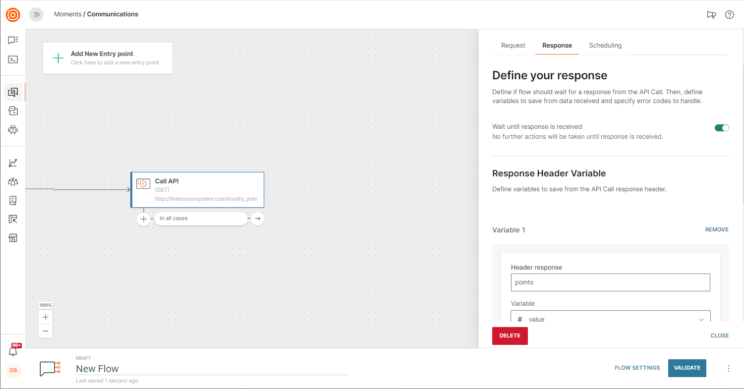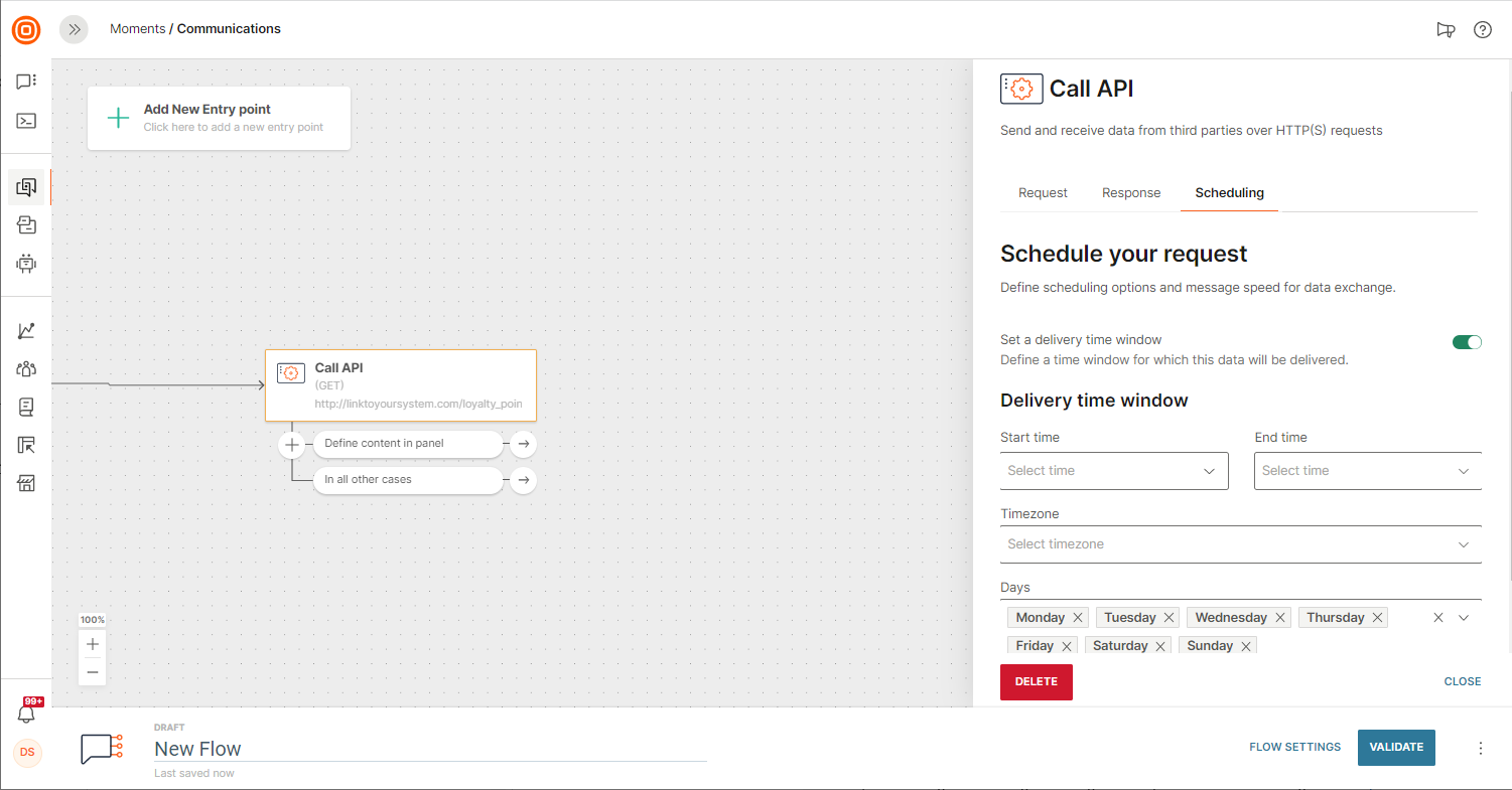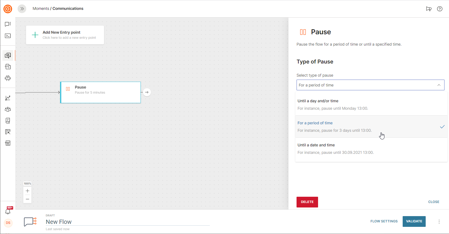 - Entry points and exit: The different ways in which an end user can enter a flow and exit the flow. Example: Trigger the flow and start a personalized journey when there is a change in the person profile.