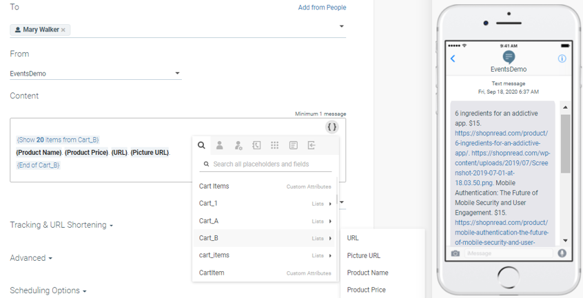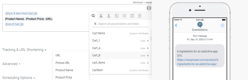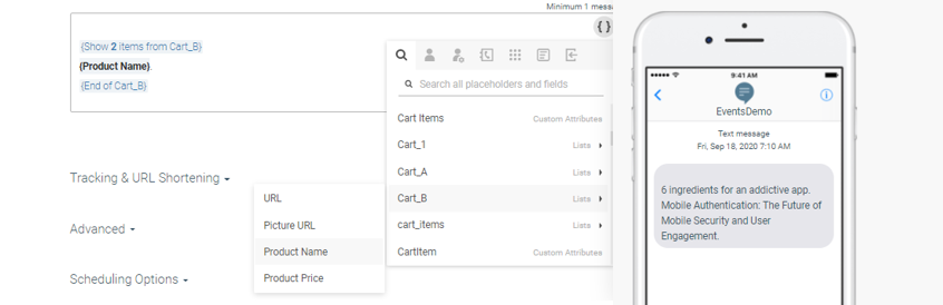 Using lists in messages can help you provide very targeted messaging directly to your users. To show how this works, we will use an abandoned cart scenario where you want to remind a customer about the items awaiting them.