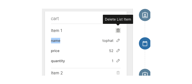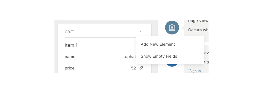 Example: For the abandoned cart scenario, the list consists of items left in the cart. The properties that you might want to add for these items are as follows: