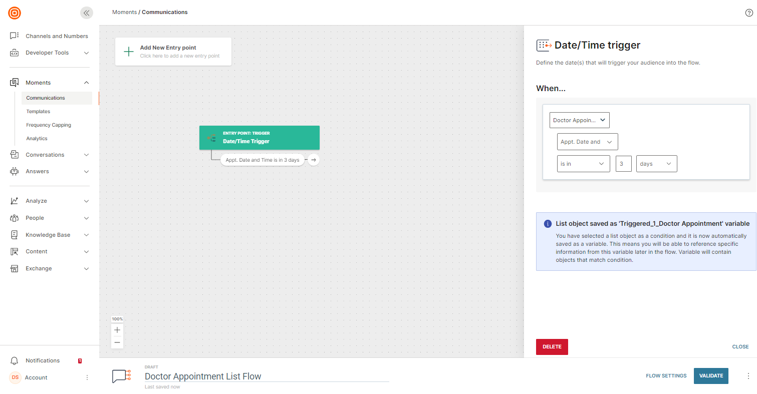 - Go to Moments > Flows.
