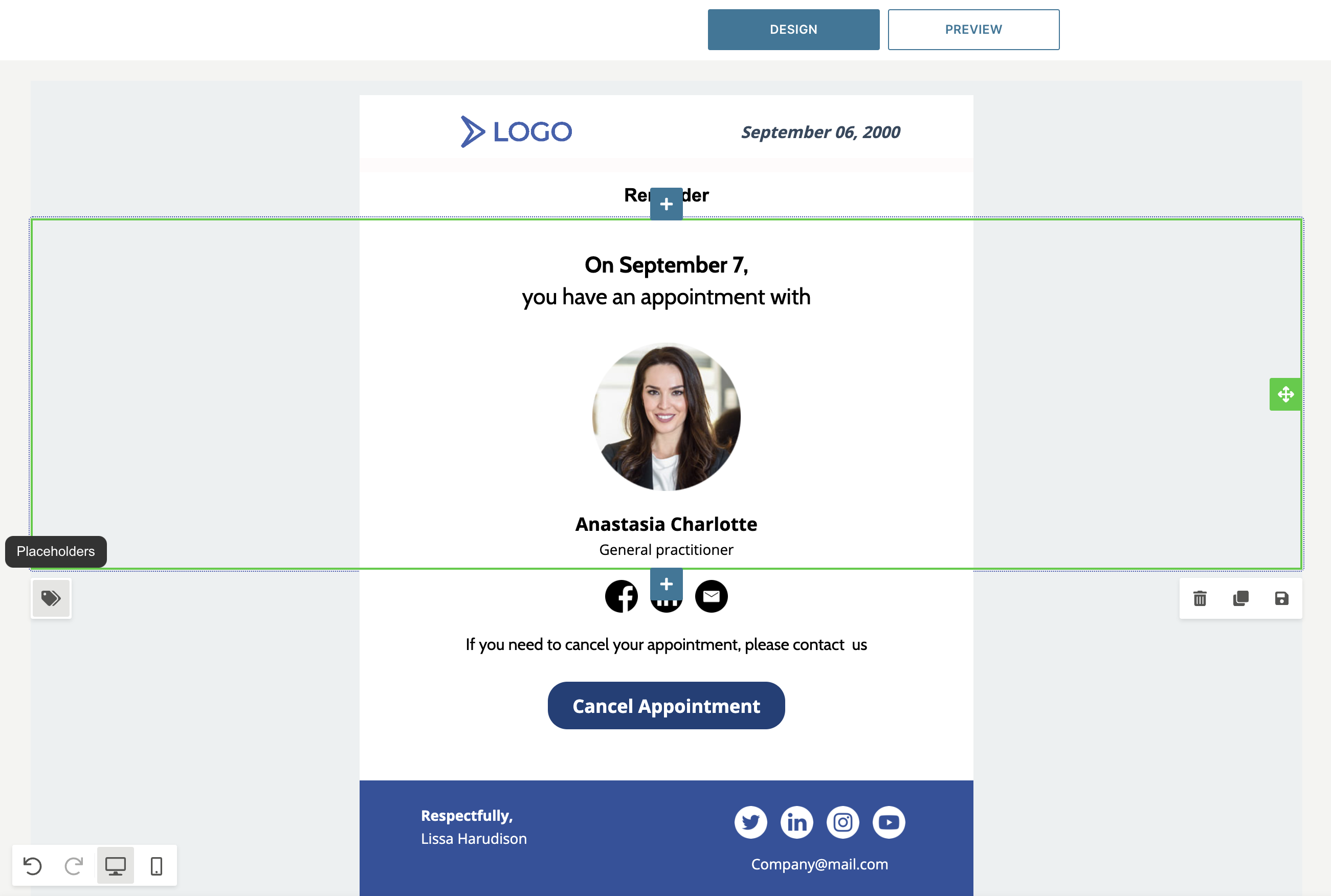 - Add rows to your email template (or directly to your email message) and style it as desired for your communication