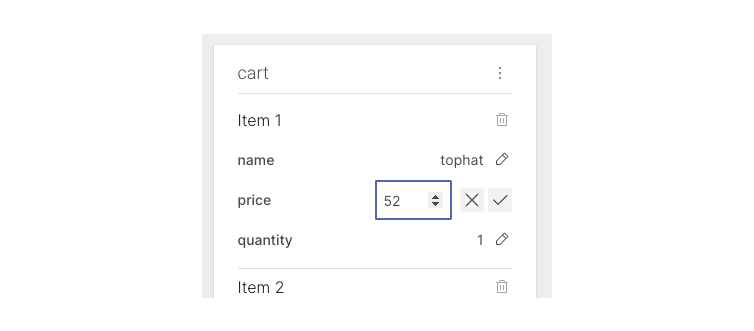 Scenario 1: Show the first two items from the cart, and one field describing the items