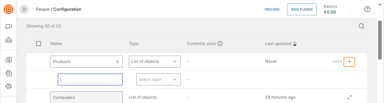 - In the Type field, select List of objects.