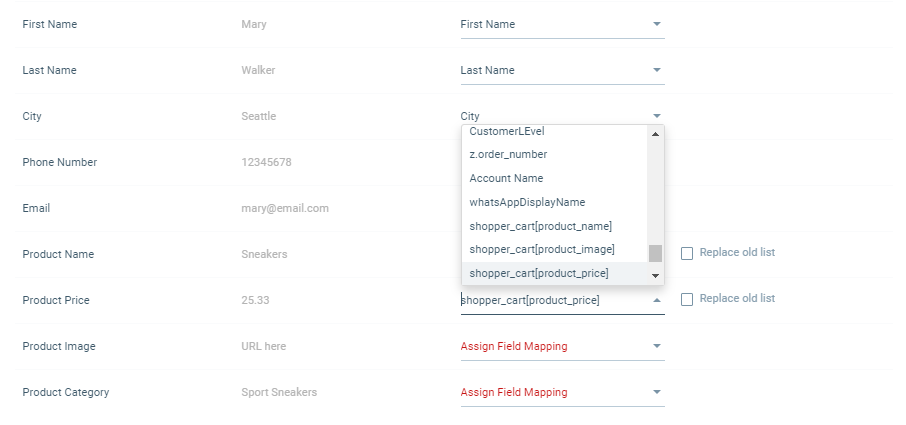 Content Window Cart items in the message: 20 Cart fields to be displayed inside the message: Product Name, Product Price, URL, Picture URL