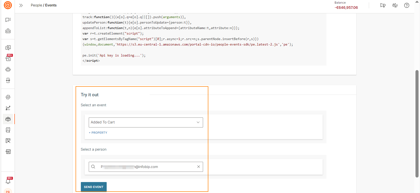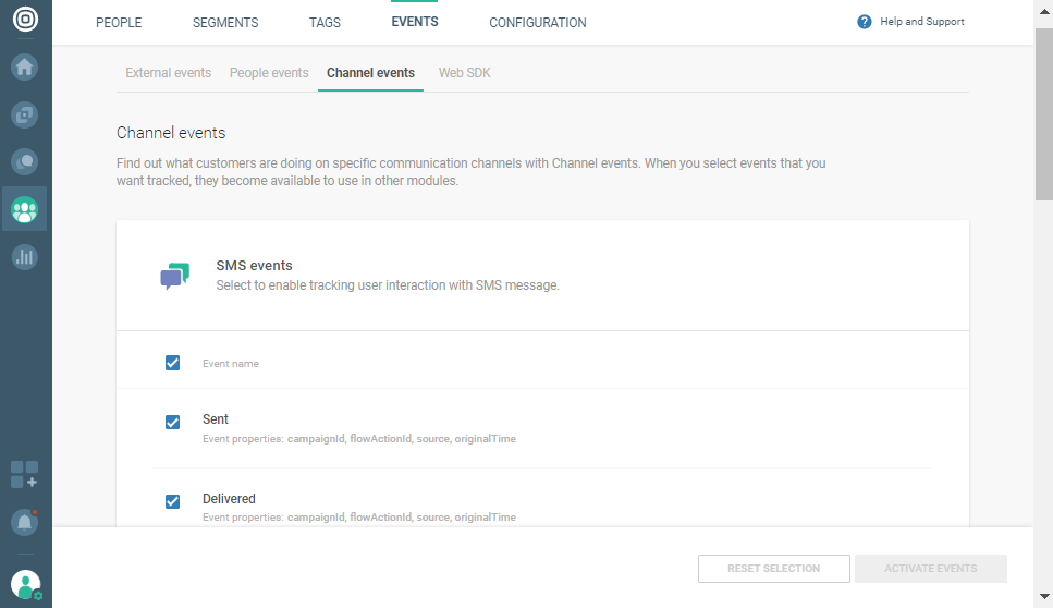 On the Infobip web interface (opens in a new tab), go to People > Events > Web SDK tab.