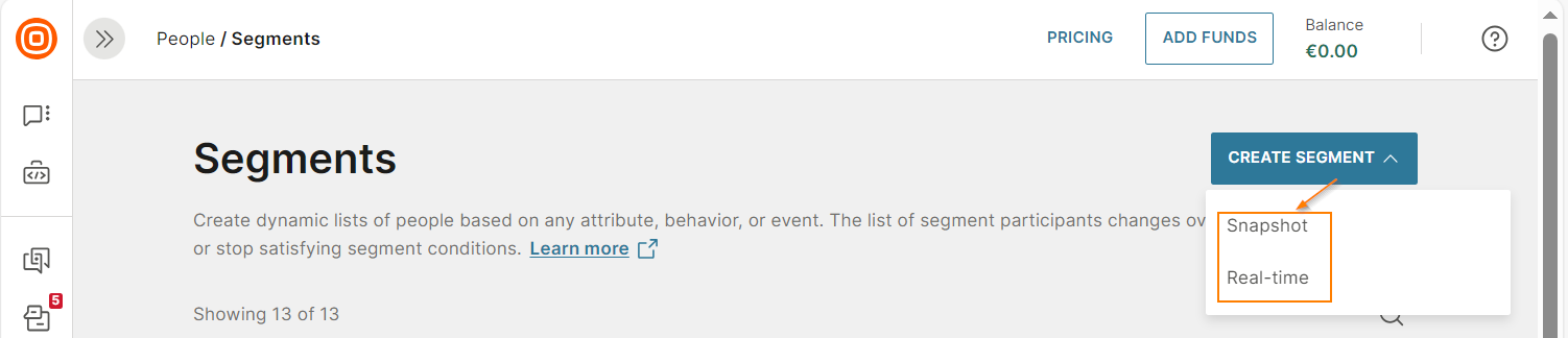 1. On the Infobip web interface (opens in a new tab), go to People > Segments.
