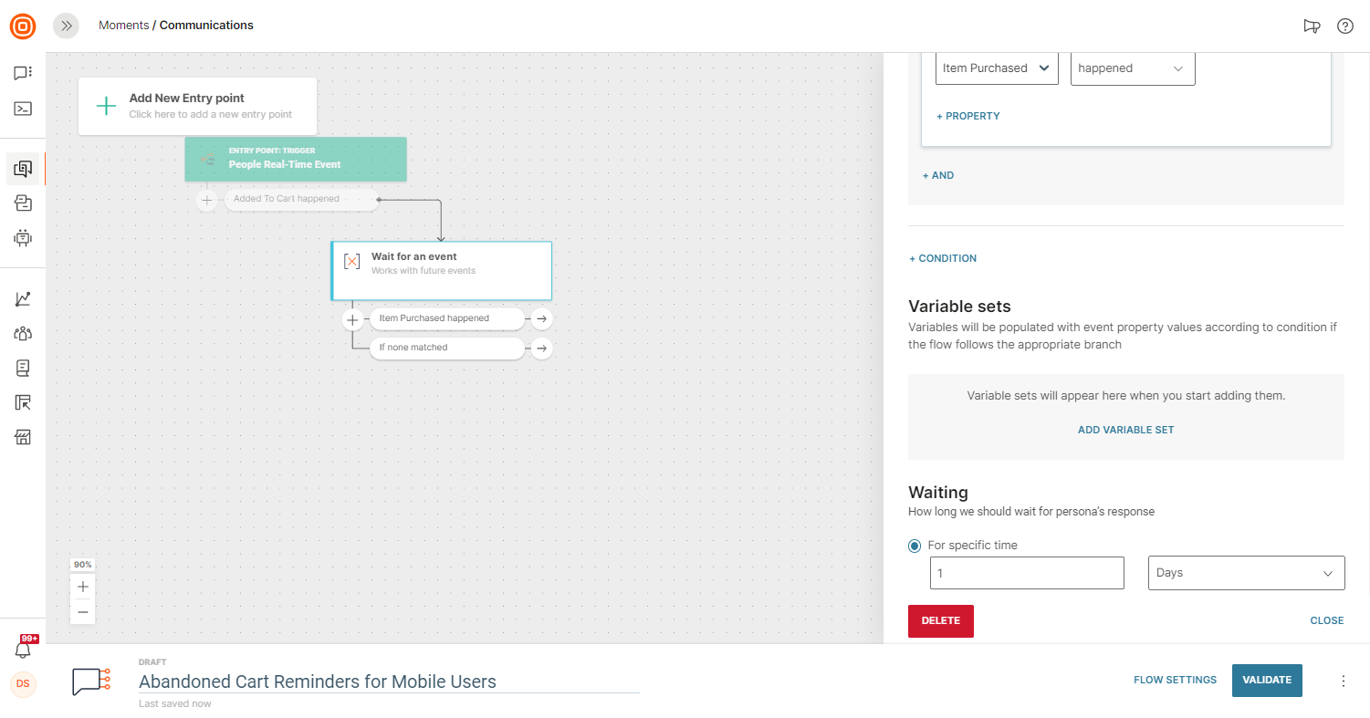 - Use the flow variable in a Mobile push notification to personalize the message to the end user and remind them to complete the purchase.