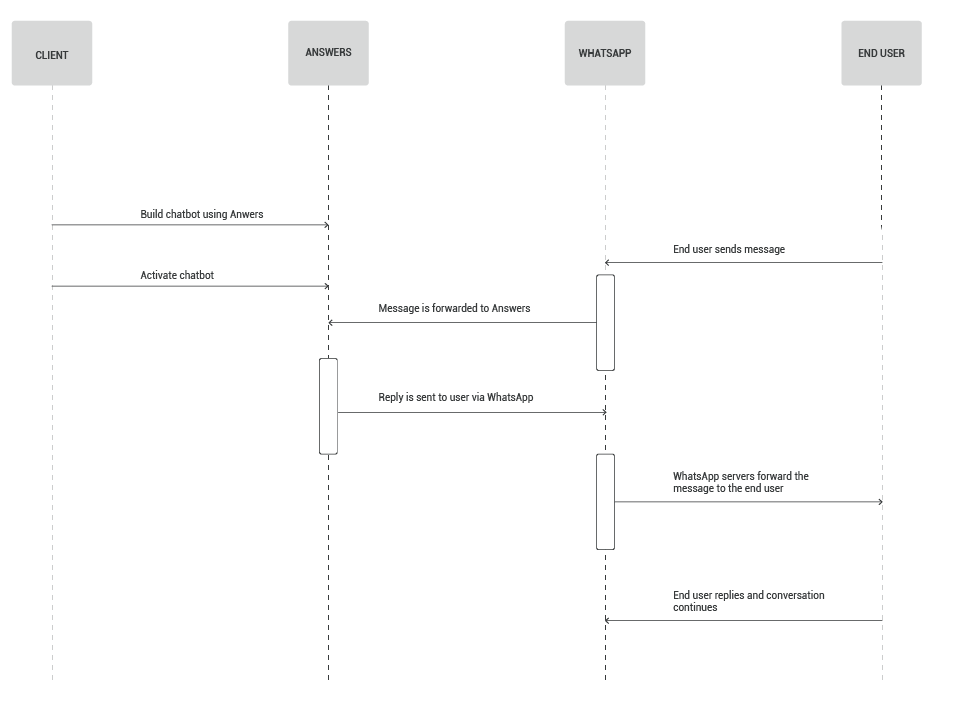 - Products/solutions used in this case are Answers, the Infobip chatbot building platform, and WhatsApp as a channel. Before you can start using WhatsApp, you have to set up the WhatsApp Business account.