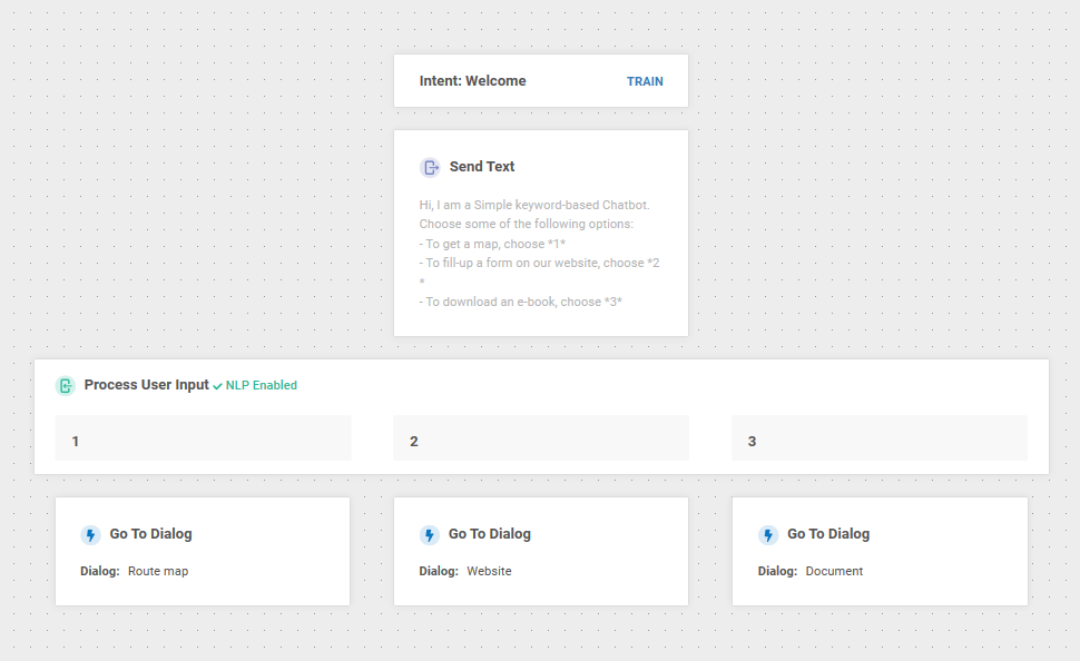 After you finish dialog design, use the Simulator tab to check how well your chatbot performs in simulations of real-life conversations As you can see, after enabling the NLP, even when the user sends the answer “Map”, the bot recognizes the question even though it is not the expected keyword.