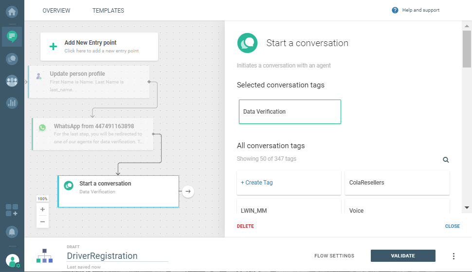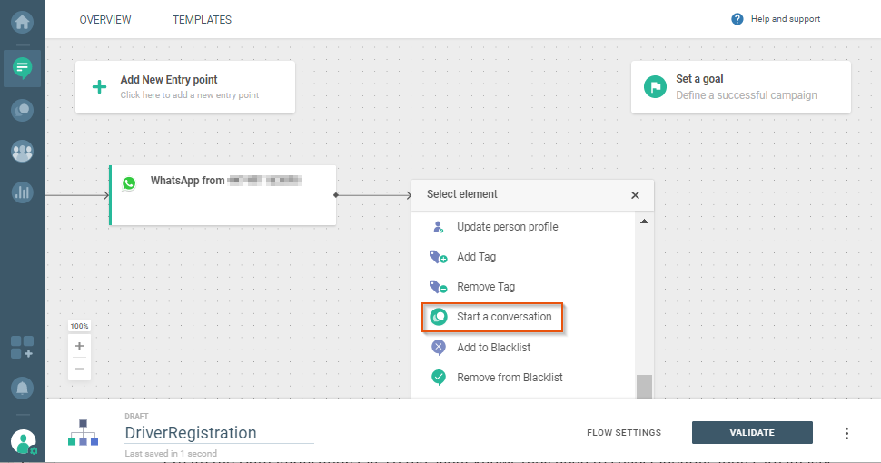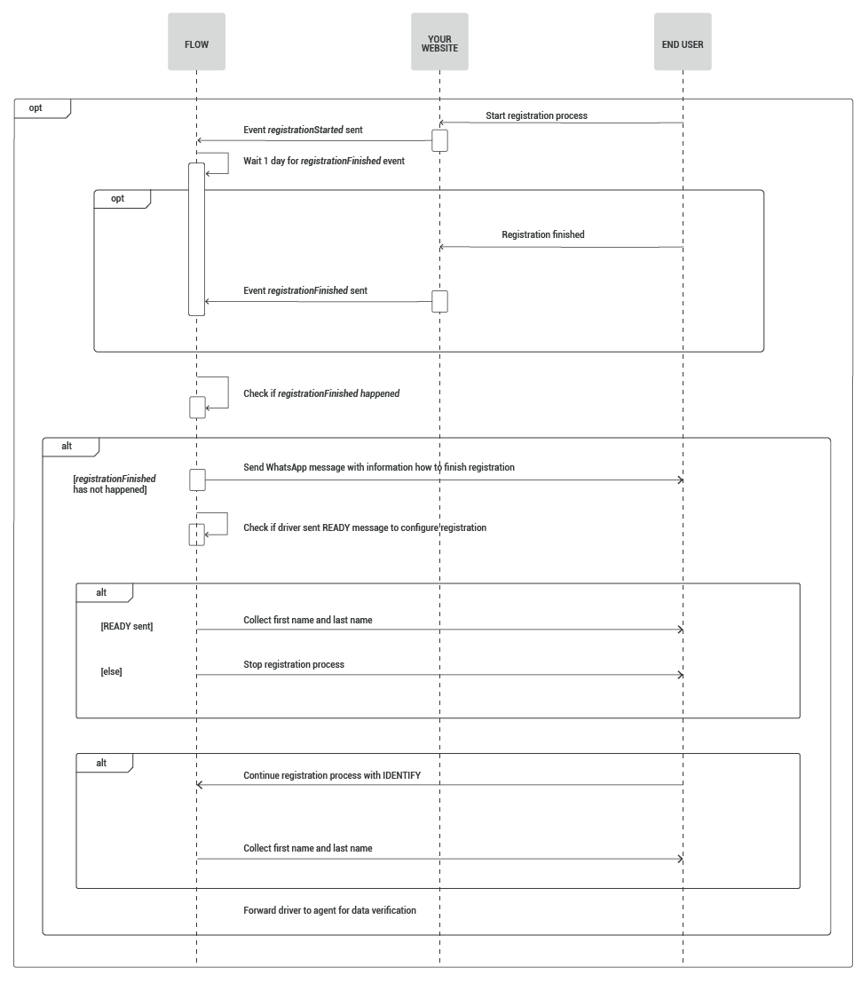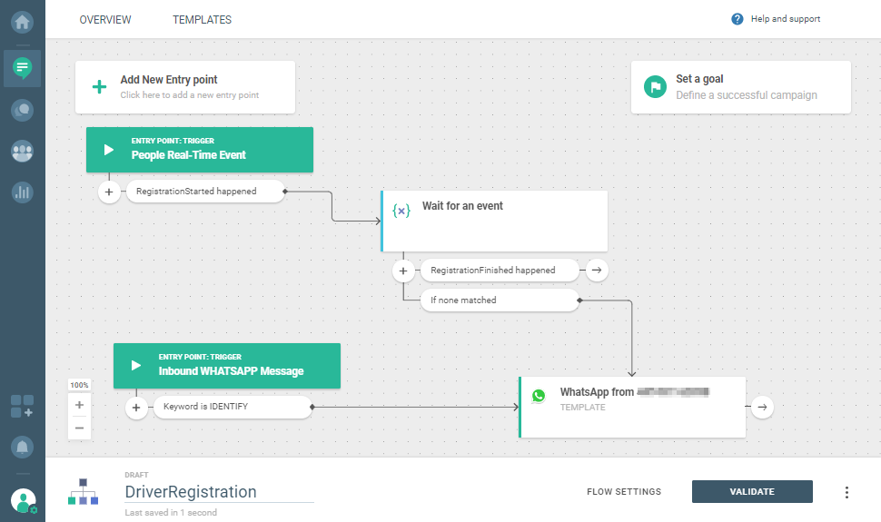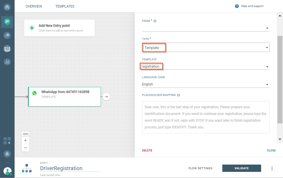 But, what happens if the driver does not finish the registration? You could wait one day (this option is available on the side panel when you click If none matched branch), and then send a WhatsApp message.
