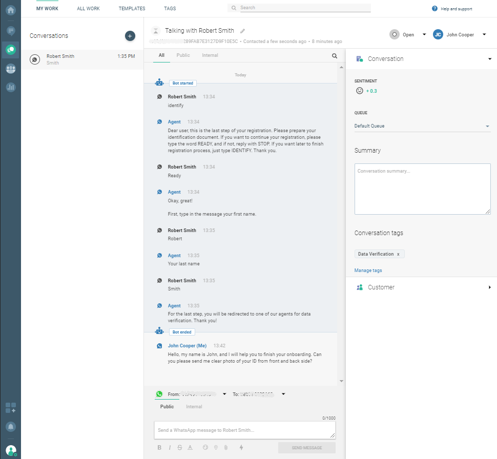 VALIDATE AND LAUNCH! The customer is redirected to an agent, and the agent helps with the completion of the onboarding process.