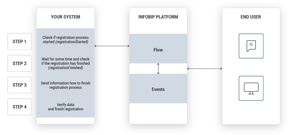 There are scenarios where scenario users sign up for your service but don't verify the account information, for example their phone number, right away. Using the Infobip platform, the goal is for your users to quicky sign up and verify their information so they can start using your service.