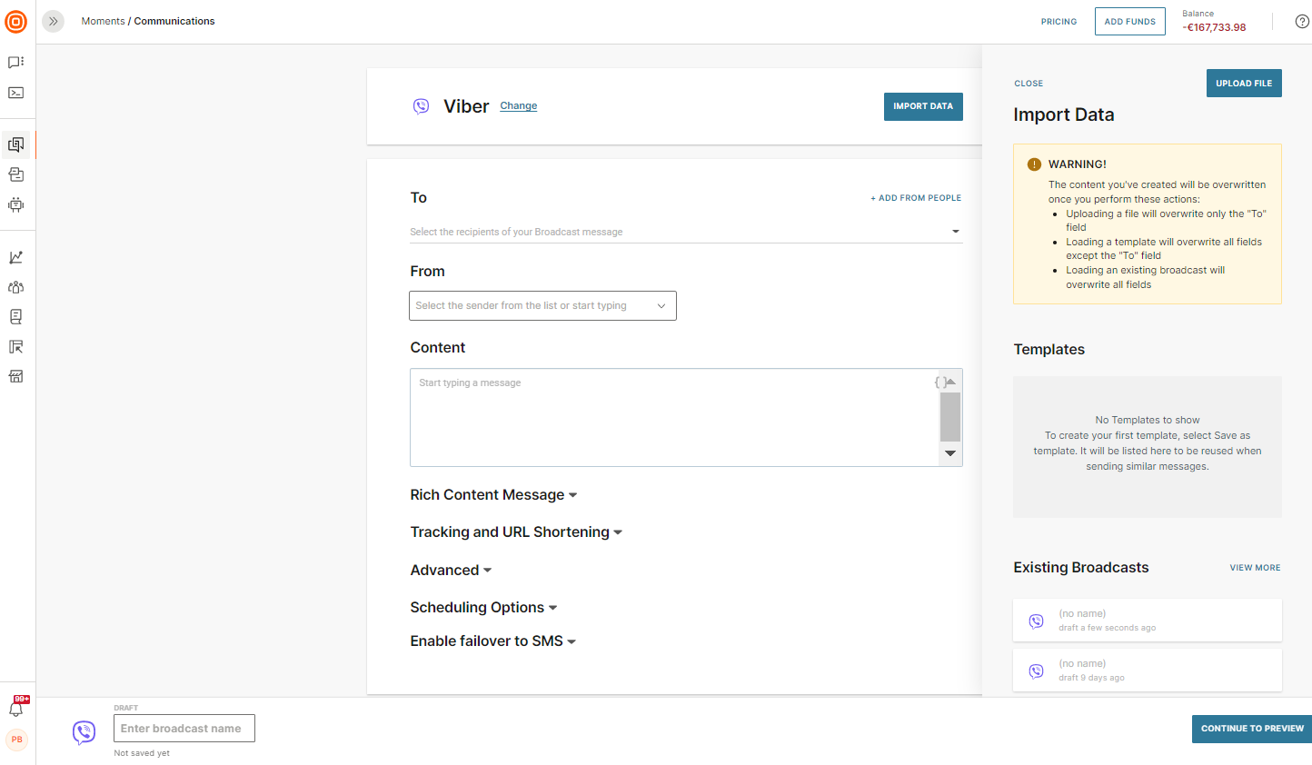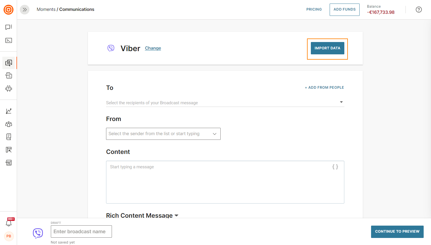 Select Viber as the preferred channel and then Import content.