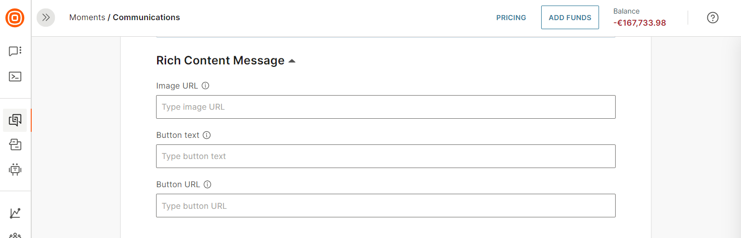 Under Content, click Select to create content to open the content editor. You can send the following message types: