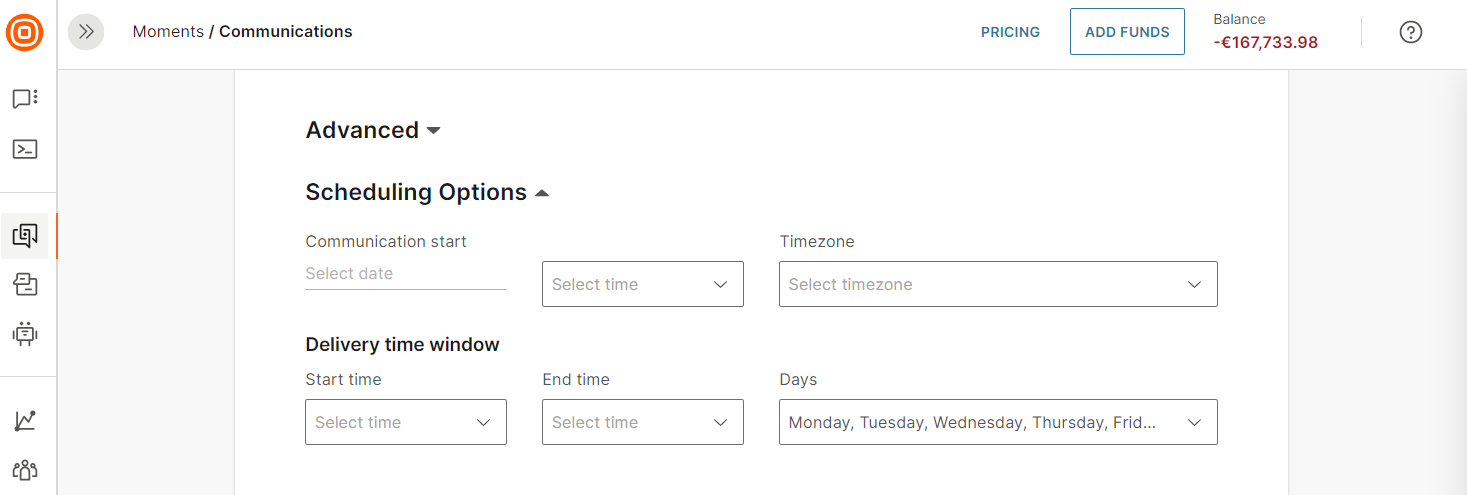 - Time zone: Choose the time zone for the communication and message delivery times