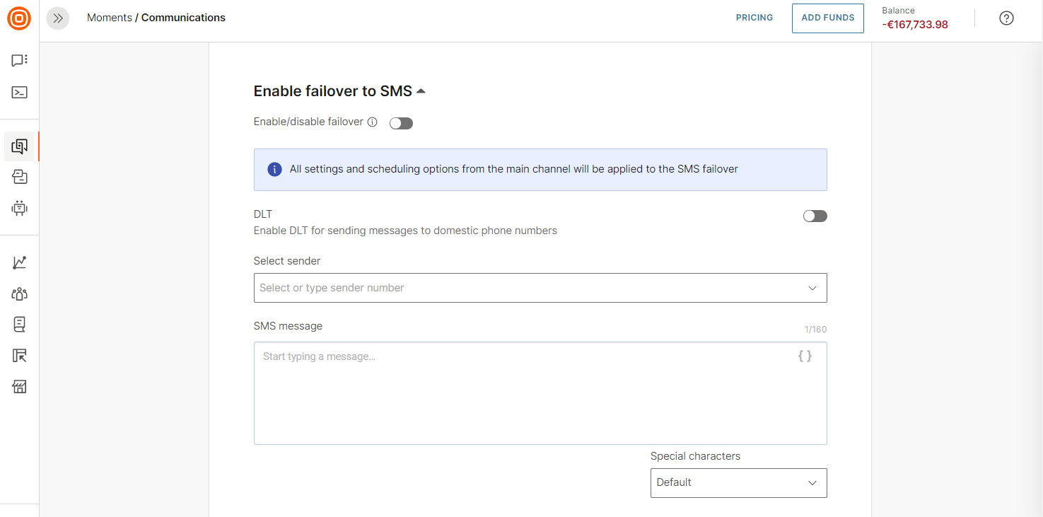 - Failover to SMS validity period: Set the validity period for the SMS failover option, specifying how long the system should attempt to send SMS messages if Viber delivery fails.