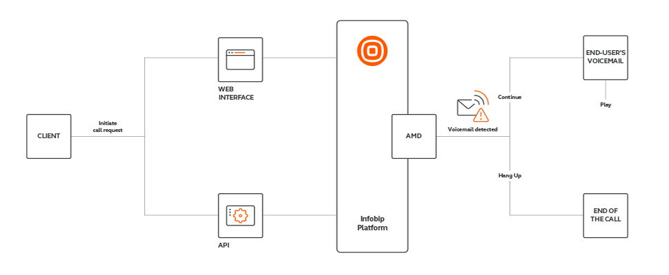 AMD works by analyzing the first few seconds of audio after a call is answered. Typically, it requires 3.74 seconds of audio to determine whether a human or a machine has answered. However, depending on the Infobip product used, it may be possible to vary the analysis time. For example: