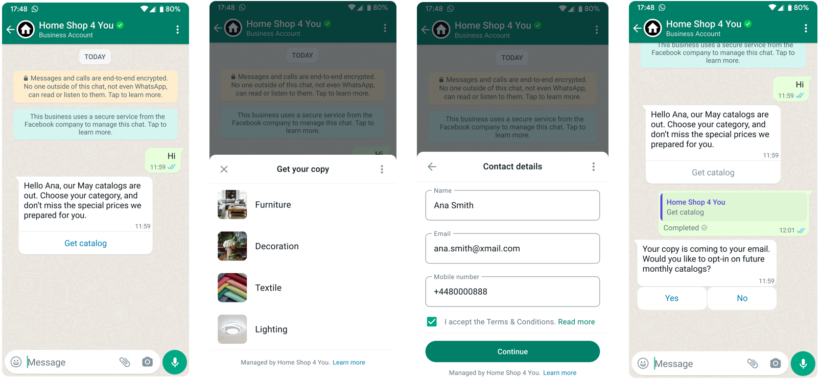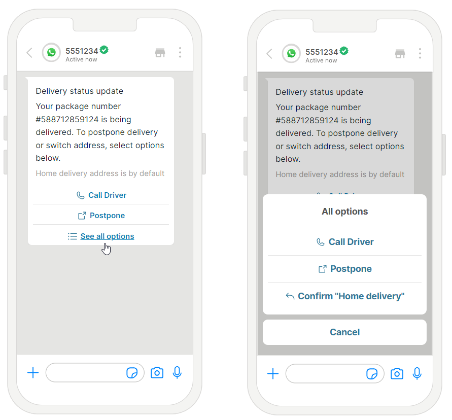 Two more categories are available exclusively over the API. Use the Send WhatsApp template message (opens in a new tab) API request for: