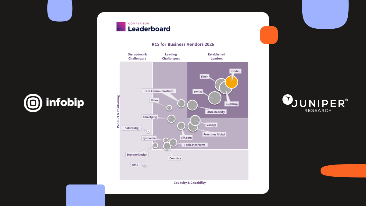 Infobip has been named the number one Established Leader in the Juniper Research RCS for Business 2026 Leaderboard. The analyst firm scored Infobip as the top vendor out of 17 because of its superior capability and capacity, enhanced product and position and significant market presence.