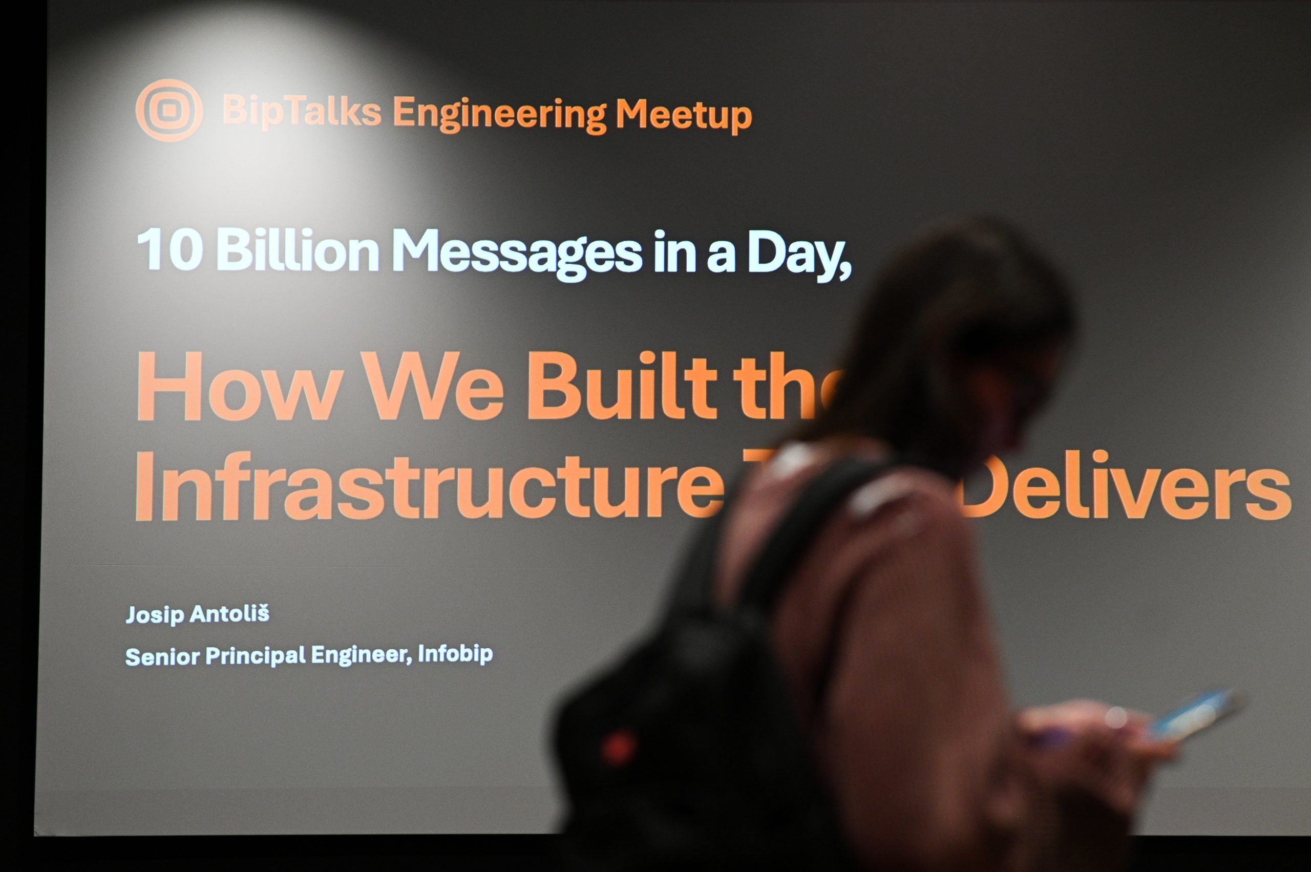 U Zagrebu je održan BipTalks Engineering Meetup posvećen Infobipovoj infrastrukturi koja omogućuje razmjenu više od 10 milijardi poruka dnevno diljem svijeta između kompanija i njihovih korisnika. Sudionici su istražili složenu kombinaciju lokalnih i cloud podatkovnih centara, virtualnih okruženja i pipelineova za kontinuiranu integraciju, koji osiguravaju brzinu, stabilnost i skalabilnost pouzdanih komunikacijskih usluga Infobipa.