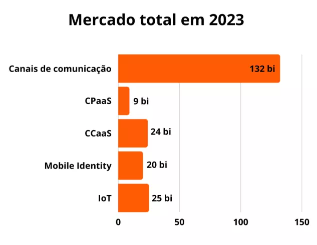 O mercado de nuvem continua a crescer com força. É previsto que o maior segmento dentro deste mercado – o SaaS – atinja U$ 151,1 bilhões em 2022. E o CPaaS chegue a U$ 17,7 bilhões em 2024.