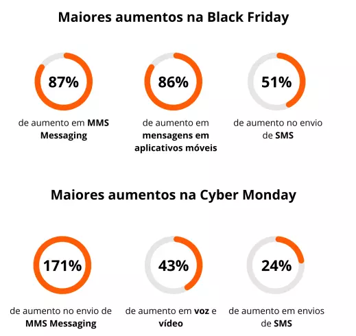 Saber como os clientes desejam interagir com as marcas é a chave para desenvolver uma estratégia de comunicação vencedora. Use esses aprendizados das interações da Black Friday e da Cyber Monday de nossos clientes para desenvolver a sua em 2022: