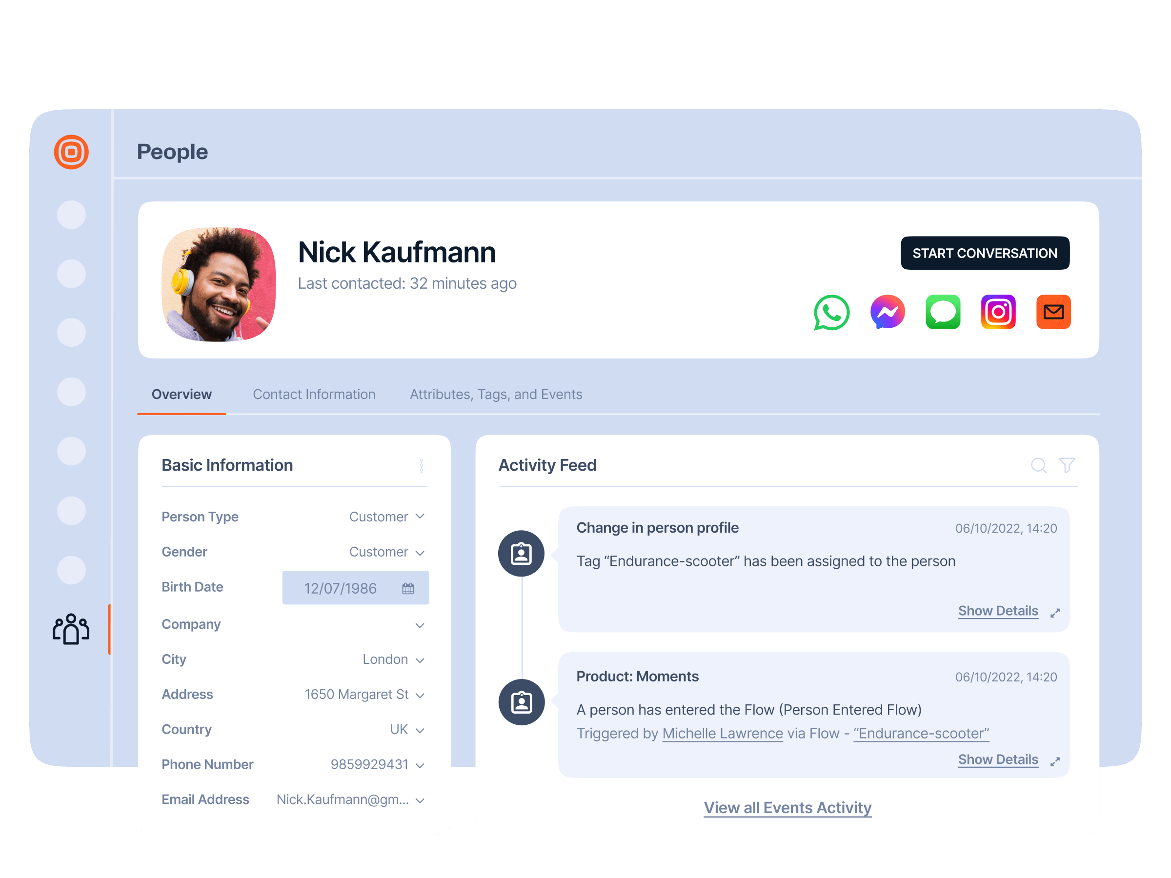 Use seus dados de clientes para criar experiências de compra perfeitas por SMS, WhatsApp, email e muito mais — tudo em uma única plataforma.