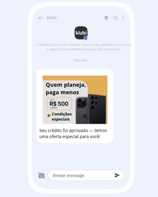 Apesar da crescente popularidade do modelo de consórcios no Brasil, o processo historicamente sempre foi lento e sujeito a ruídos, especialmente devido à comunicação fragmentada entre as partes e às opções limitadas de pagamento. Para mudar essa percepção e se diferenciar no mercado, o Klubi precisava oferecer uma comunicação direta, conversacional e personalizada, capaz de acompanhar toda a jornada do cliente de forma fluida.