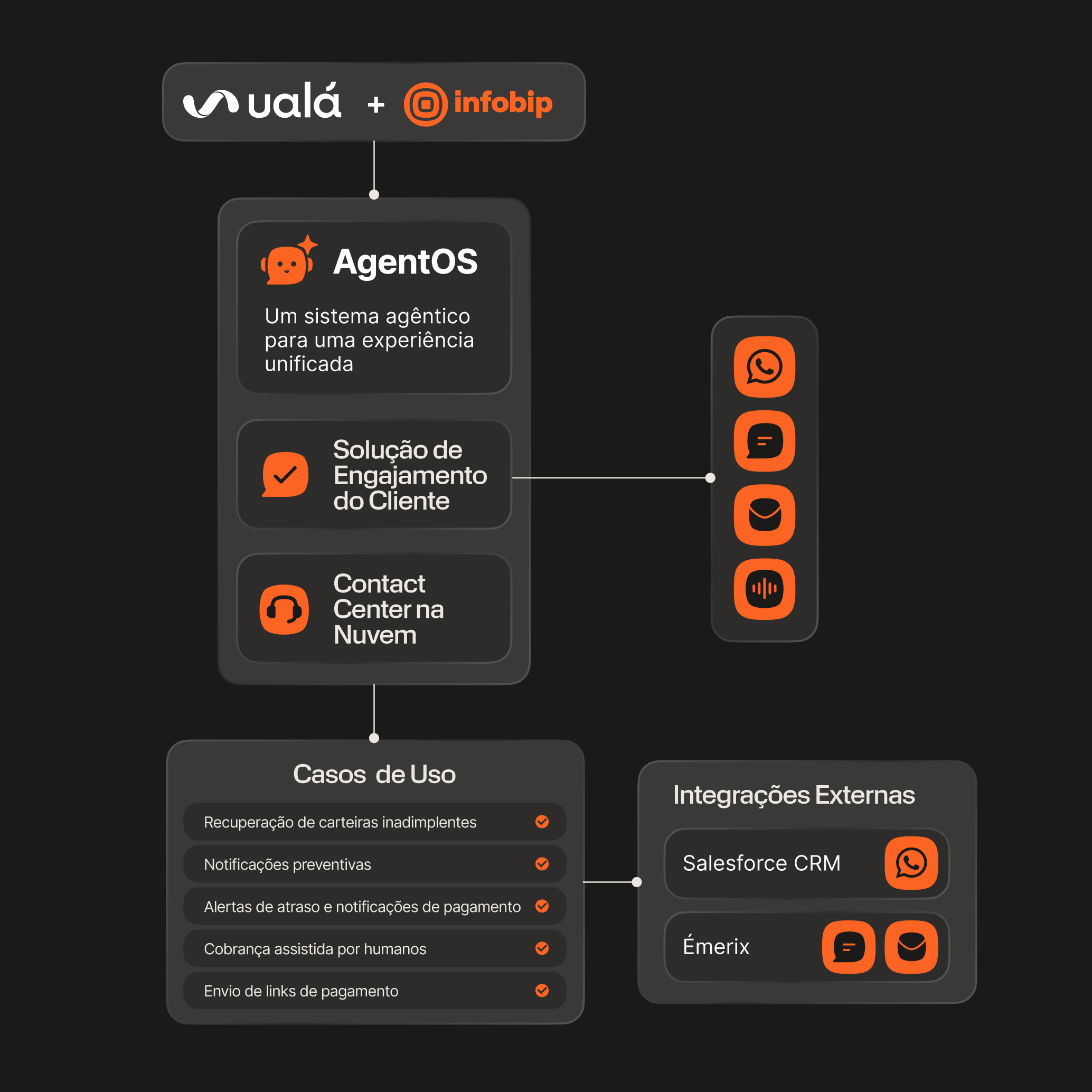 A Ualá precisava de uma infraestrutura de cobrança escalável, em conformidade com as normas e totalmente rastreável, projetada especificamente para apoiar operações de cobrança de alto volume e múltiplos estágios de inadimplência, sem eliminar o elemento humano necessário em conversas financeiras sensíveis.
