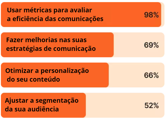 Além disso, as ações que as marcas tomam depois de analisar essas métricas influenciam a sua maturidade – fazer melhorias nas estratégias, ajustar a personalização e reorganizar a segmentação do público significa que uma marca entende seus dados e métricas e como utilizá-los para criar melhores experiências conversacionais.